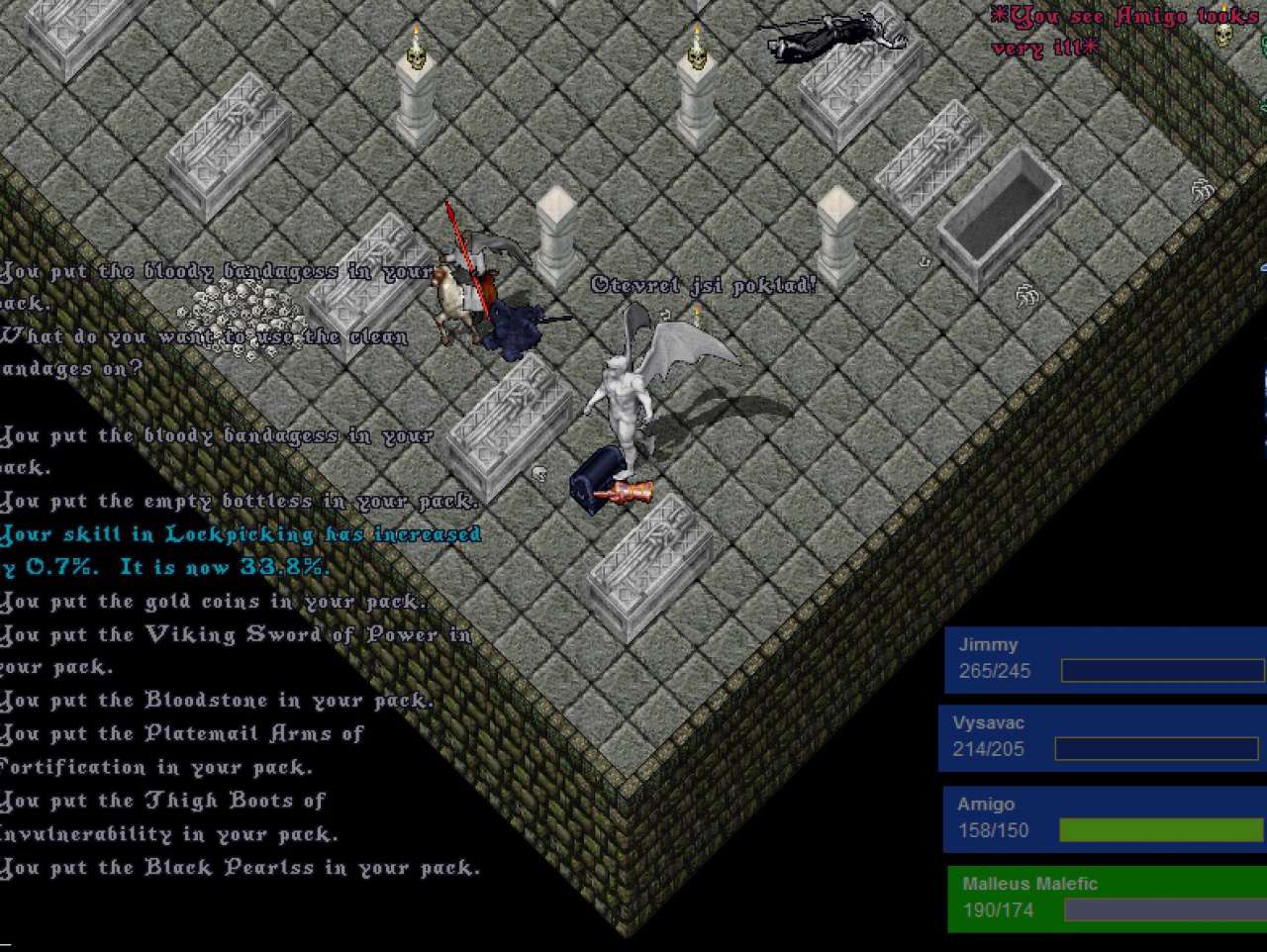 | Tentokrát se žádné body nekonaly, protože nás velmi statečně pojel jeden hloupoučký Hated, pfkama v poslední místnosti. Malou útěchou nám budiž to, že přes svou nesmírnou neschopnost nestihli doběhnout pro naše těla. |