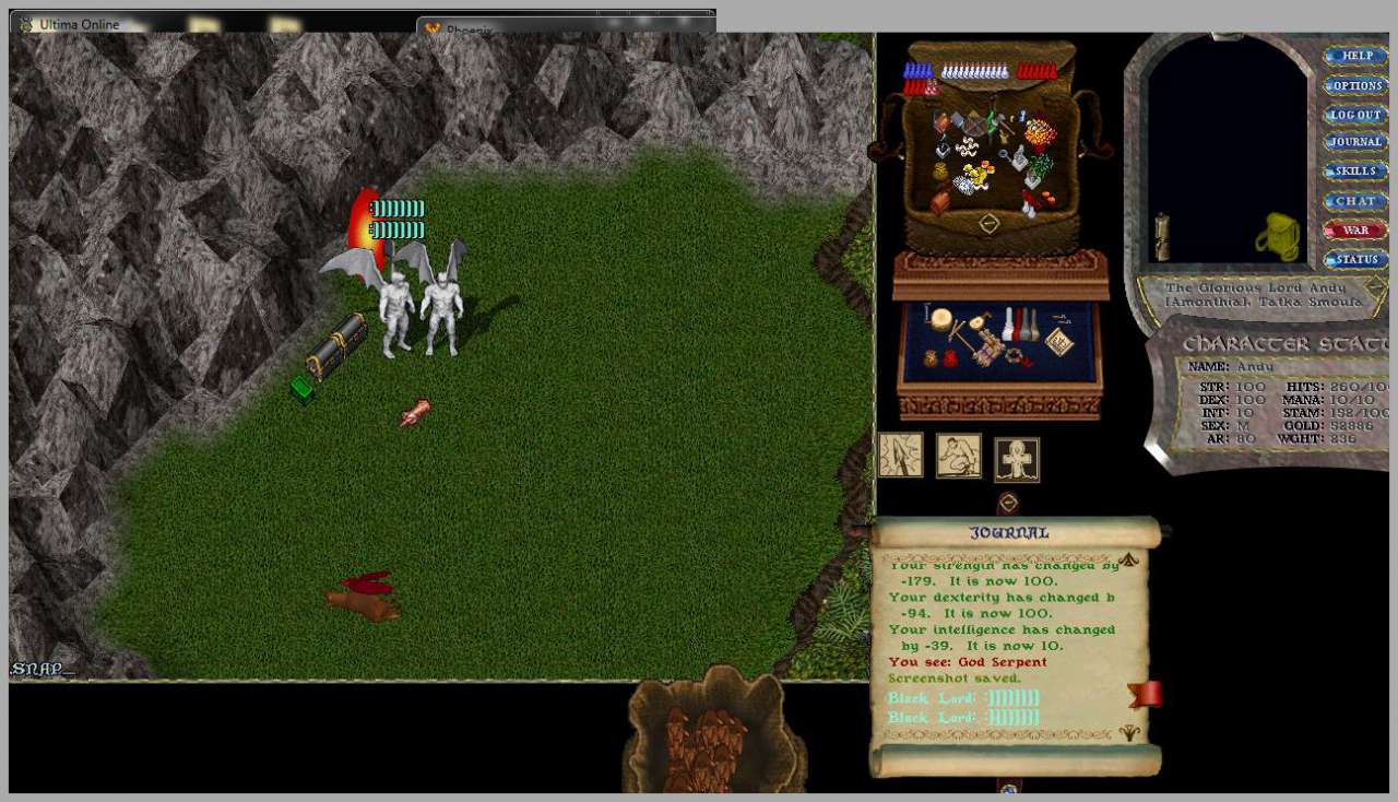 | Po těžkých nástrahách od vyšší moci kdy za hrdinou Blackem běhali monstra a útočila na něj i ze stínů i přes to že vyhazoval až 7 Bullů na jedno monstrum a monstra stále držela target a nebyla schopná změnit tárget na jediného bulla se Lord Black Lord prokousal asi po třech hodinách k pokladu nasbíráno měl, krásné věci a hromadu zlata ale vyšší moc zřejmě prohodila slabé LSN za silné a Spider king za slabé LSN bez možnosti změny targetu tak z Lorda Black Lorda se stal pouhý Black Lord no škoda nebylo mu přáno. |