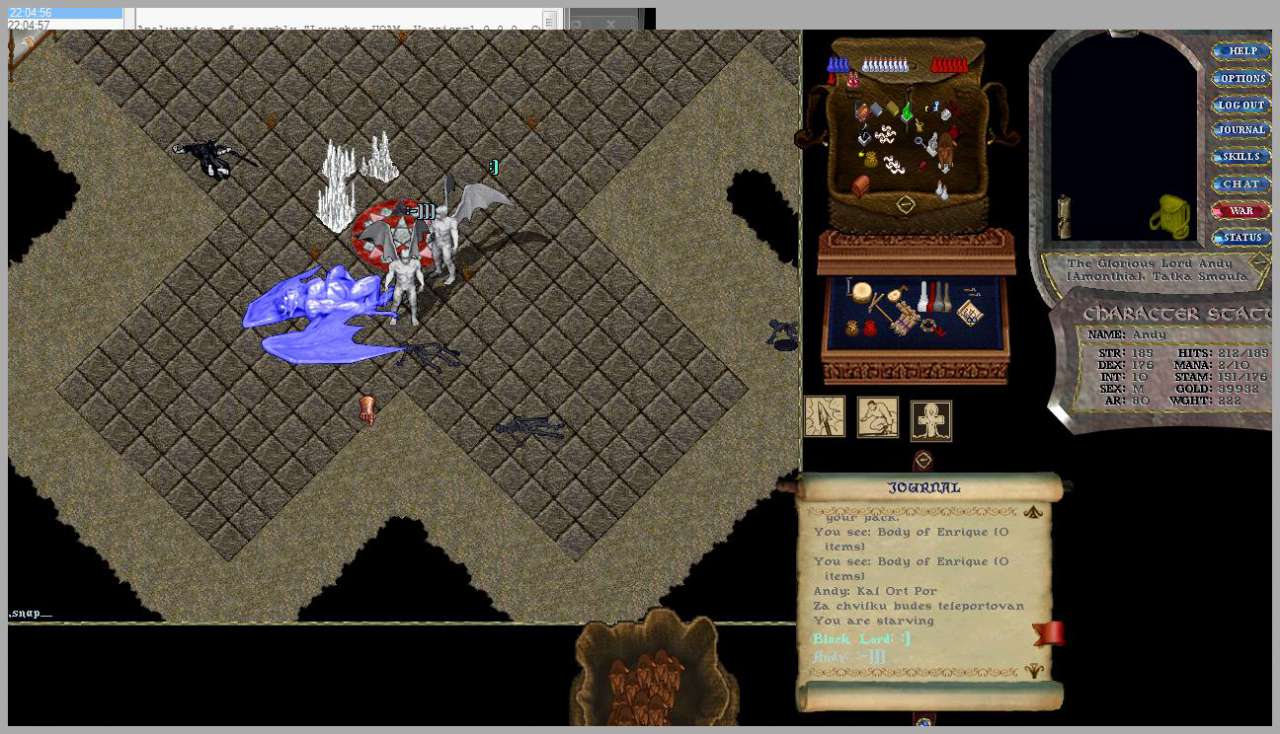 | Drsní a větrem ošlehaní dobrodruzi v čele s kulhavým, šišlavým a hluchým mágem Bulíkem, navíc zpitým do němoty přehršlí vína, se vydala rozdrtit prašivá a zavšivená monstra tohoto mizerného dungeonu. ...až na konci se Bulík přiznal, že to chodí na sólo... (po krátkém, ale intenzivním mučení se přiznal, že vždycky dojde až do poslední místnosti, kde většinou lehne :-) ). ..I přesto má náš obdiv :-) |